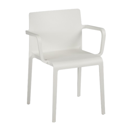 Sedia Volt 675 bianca con braccioli, adatta ad un uso anche in esterno.