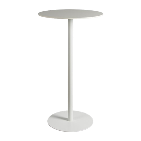 Tavolo Brio Bianco Alto piano rotondo, adatto anche ad un utilizzo in esterno.